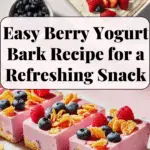 Berry yogurt bark is a refreshing and healthy frozen snack made with creamy Greek yogurt and a colorful mix of juicy berries. This easy-to-make treat is naturally sweetened, customizable, and perfect as a guilt-free dessert or kid-friendly snack that requires no cooking.