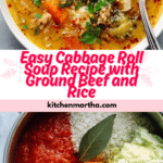Enjoy all the comforting flavors of traditional cabbage rolls in a quick and easy soup form. This hearty tomato-based soup combines browned ground beef, rice, and tender green cabbage in a flavorful broth, making it perfect for a satisfying weeknight meal.
