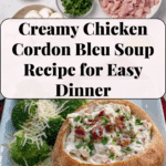 A creamy and comforting Chicken Cordon Bleu Soup inspired by the classic dish, featuring shredded chicken, diced ham, and melted Swiss cheese in a rich, savory broth.