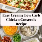 Creamy Low Carb Chicken Casserole is a comforting and cheesy dinner featuring tender shredded chicken baked in a rich cream sauce with broccoli and cheddar cheese. This easy-to-make casserole is ideal for those following keto or low-carb diets seeking a hearty yet healthy meal.
