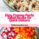 A deliciously simple creamy pasta salad loaded with crunchy vegetables and a smooth, tangy dressing—perfect for BBQs and quick weeknight sides.