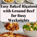 Easy Baked Rigatoni with Ground Beef is a comforting Italian-American pasta casserole featuring tender rigatoni pasta baked with savory ground beef, rich marinara sauce, creamy ricotta, and a generous blend of melted mozzarella and Parmesan cheeses. This simple, hearty dish is perfect for a family dinner or crowd-pleasing meal that can be prepared ahead or frozen for convenience.