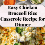 A comforting and creamy chicken broccoli rice casserole that combines tender cooked chicken, fresh broccoli florets, fluffy rice, and cheddar cheese baked together for a simple, family-friendly dinner perfect for busy weeknights.