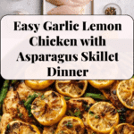 A quick and easy one-skillet dinner featuring juicy lemon chicken breasts and tender asparagus cooked in a flavorful garlicky butter sauce, perfect for a healthy weeknight meal.