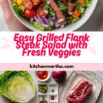 Grilled Flank Steak Salad is a hearty and flavorful meal featuring tender slices of perfectly grilled flank steak served over a bed of fresh mixed greens, cherry tomatoes, cucumber, and red onion. Finished with crumbled feta cheese and a tangy homemade balsamic dressing, this salad offers a balanced combination of protein, crisp vegetables, and vibrant flavors, making it ideal for a satisfying lunch or dinner.