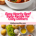 After simmering, taste your soup and adjust the seasoning with salt and pepper. This final touch harmonizes all the flavors you’ve developed. Your Hearty Beef Soup Recipe is now ready to be ladled into bowls and enjoyed warm.