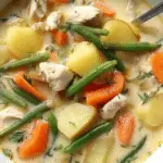 A comforting and traditional American homestyle chicken stew featuring tender shredded chicken, hearty vegetables, and a rich, savory broth. This dish is perfect for cozy family dinners and brings classic flavors together in a warm, satisfying meal.