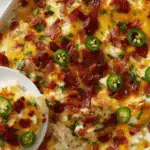 A creamy, cheesy chicken casserole loaded with spicy jalapeños, crispy bacon, and melted cheddar cheese. Inspired by classic jalapeño poppers, this dish is a rich, comforting, and flavorful main course that combines the heat of peppers with savory chicken and a luscious cheese sauce.
