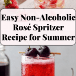 A refreshing, bubbly rosé spritzer made without alcohol. Light, fruity, and perfectly fizzy, this easy mocktail is ideal for warm days, celebrations, or anytime you want a pretty pink drink everyone can enjoy.