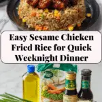 This Sesame Chicken Fried Rice Recipe pairs beautifully with simple Asian-inspired sides like steamed dumplings, a light cucumber salad, or miso soup. These helpers can add variety and complement the hearty fried rice without overshadowing it.