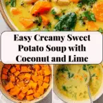 A creamy, vegan spiced sweet potato soup featuring roasted sweet potatoes, white beans, and coconut milk, elevated with a zesty burst of fresh lime juice. This nourishing and flavorful tropical-inspired soup combines warm spices with velvety texture, perfect for a comforting meal.