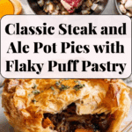 Tender beef stew meat simmered in a rich ale-based sauce with aromatic vegetables and herbs, topped with flaky puff pastry to create comforting individual steak and ale pot pies. Perfect for chilly days, these hearty pies combine the depth of slow-cooked beef with the light crispness of baked pastry.