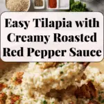 This tilapia in roasted pepper sauce is a light, flavorful, and elegant yet easy recipe. Tender pan-seared tilapia fillets are smothered in a silky roasted red pepper garlic sauce, creating a perfect healthy weeknight dinner or special occasion meal with Mediterranean-inspired flavors.